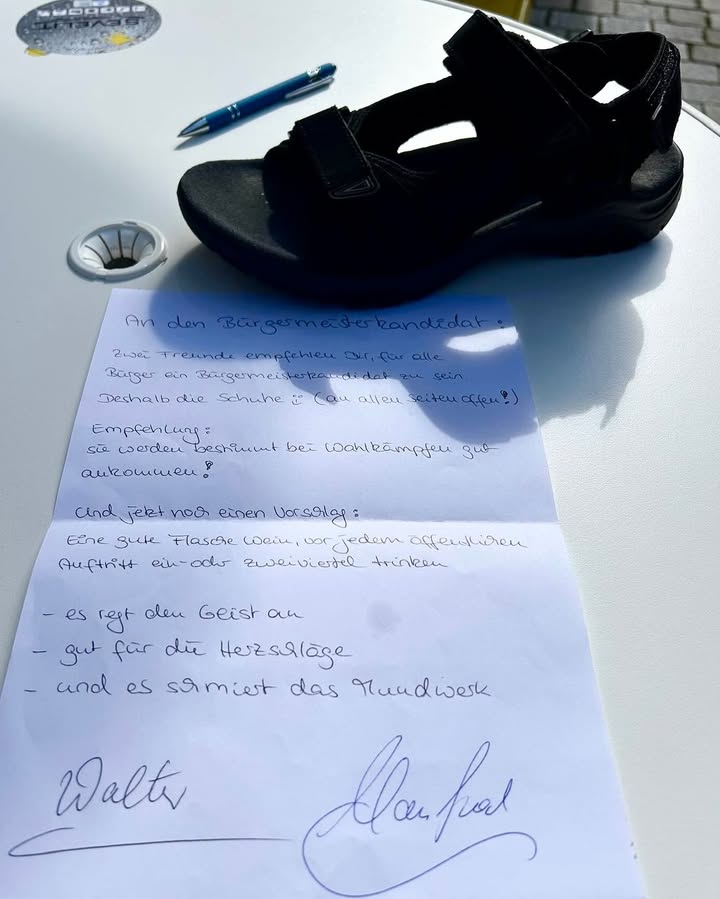 👣 Oꜰꜰᴇɴ ꜰüʀ ᴀʟʟᴇ Sᴇɪᴛᴇɴ – ᴜɴᴅ ꜰüʀ ᴀʟʟᴇ Büʀɢᴇʀɪɴɴᴇɴ ᴜɴᴅ Büʀɢᴇʀ! Zur Eröffnung seines neuen Bürgerbüros Freiraum in Weilheim bekam unser Bürgermeisterkandidat Morten Faust ein ganz besonderes Geschenk: Ein Paar Sandalen – mit der Empfehlung, sie auf dem Weg zu den Menschen zu tragen. Warum? Weil sie „nach allen Seiten offen“ sind – so wie auch Morten: offen für Ideen, Anliegen und Gespräche. Dazu gab’s noch den humorvollen Rat, vor jedem öffentlichen Auftritt einen Schluck Wein zu nehmen – „für Geist, Herzschlag und Handwerk“. 🍷😉 Wir finden: Ein schöner Start für den Freiraum – und für einen Wahlkampf mit Herz, Humor und Haltung. 💛 #FDP #FDPWeilheimSchongau #FreiraumWeilheim #MortenFaust #Weilheim #Kommunalpolitik #Bürgernah #OffenFürAlle #Liberale #Bürgermeisterwahl #TeamFDP #Weilheim2025 #PolitikMitHerz #HeimatMitZukunft #WeilheimKannEsBesser